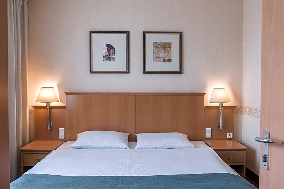 An air-conditioned, spacious junior suite consists of a separate bedroom with a flat-screen TV and a living room equipped with second flat-screen TV and coffee machine. There is a larger bathroom with a shower, bathtub and a hairdryer. The suite comes with soundproofed windows. There also is a mini-bar and free bottled mineral water.